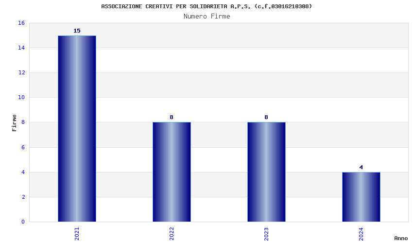 | Anno | Firme | Importi | Media | Naz. | Reg. | Prov. | Comu. |