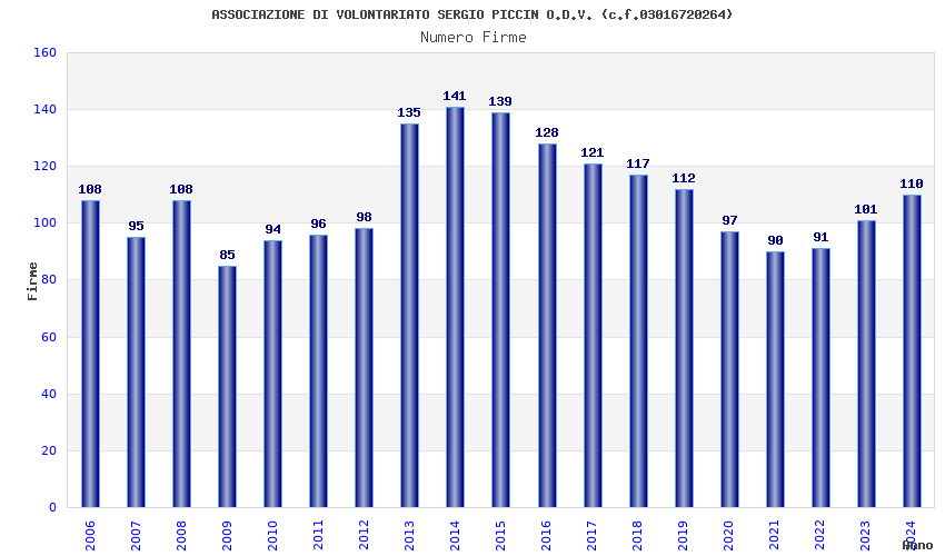 | Anno | Firme | Importi | Media | Naz. | Reg. | Prov. | Comu. |
