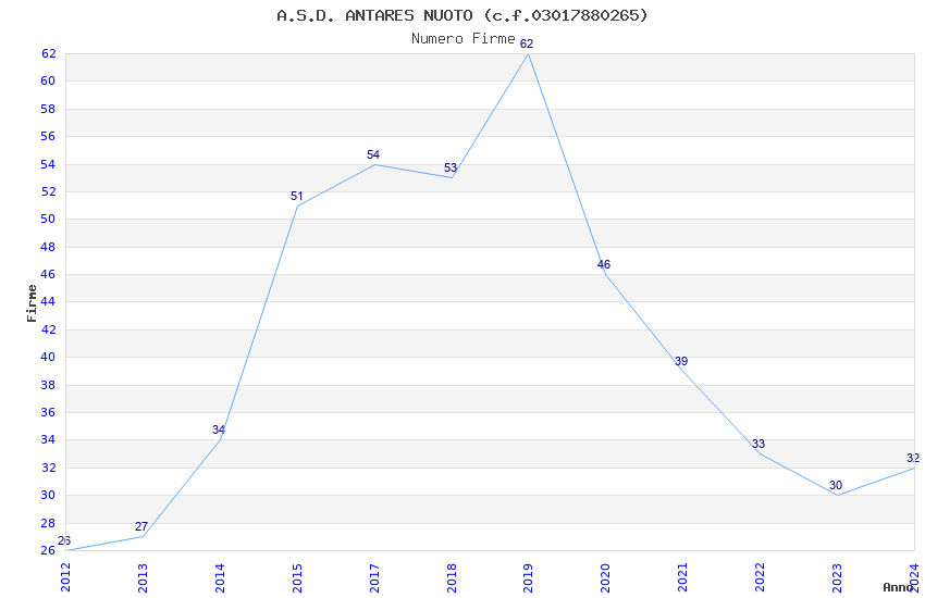 | 2019 | 62 | 1.842,26 | 29,71 | 25.345 | 2.407 | 400 | 20 |