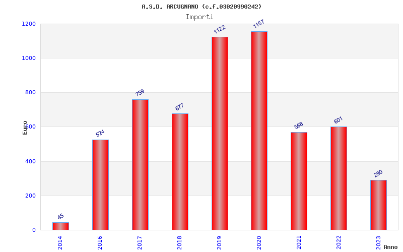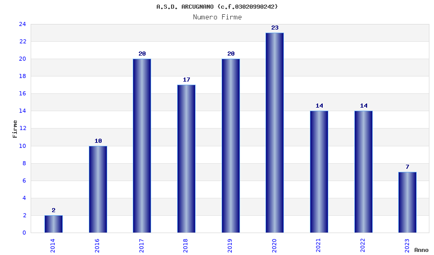| Anno | Firme | Importi | Media | Naz. | Reg. | Prov. | Comu. |