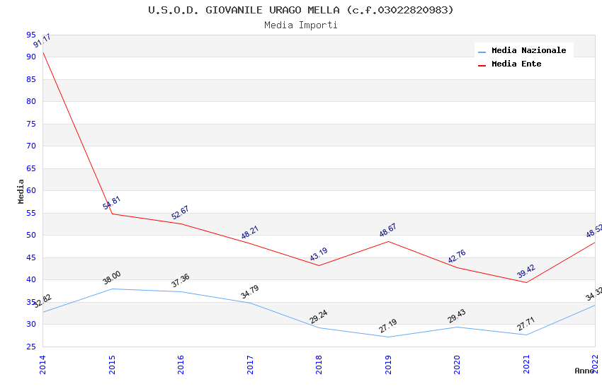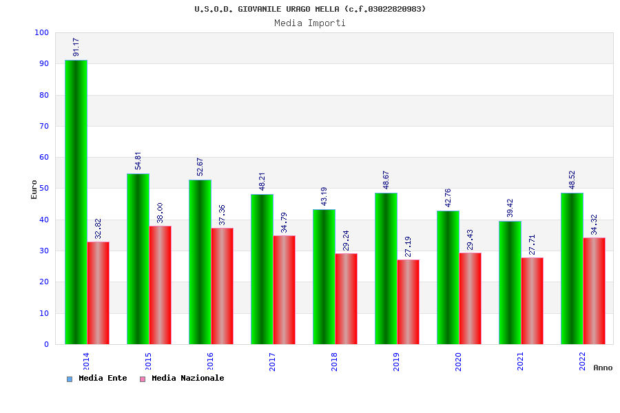 | Anno | Firme | Importi | Media | Naz. | Reg. | Prov. | Comu. |