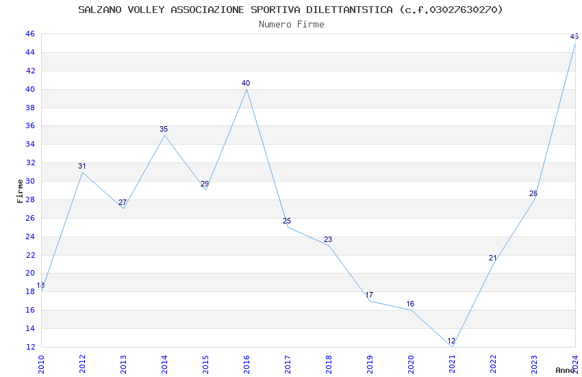 | Anno | Firme | Importi | Media | Naz. | Reg. | Prov. | Comu. |