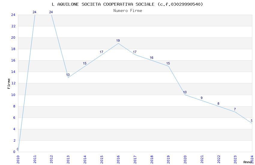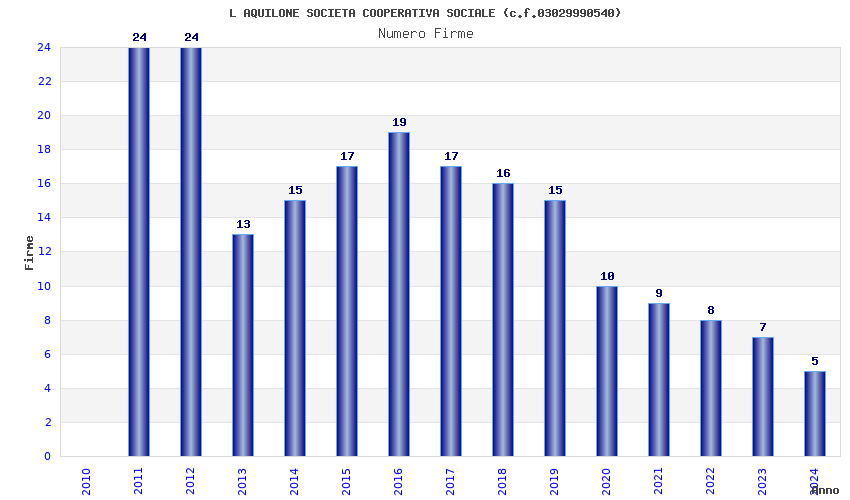| Anno | Firme | Importi | Media | Naz. | Reg. | Prov. | Comu. |