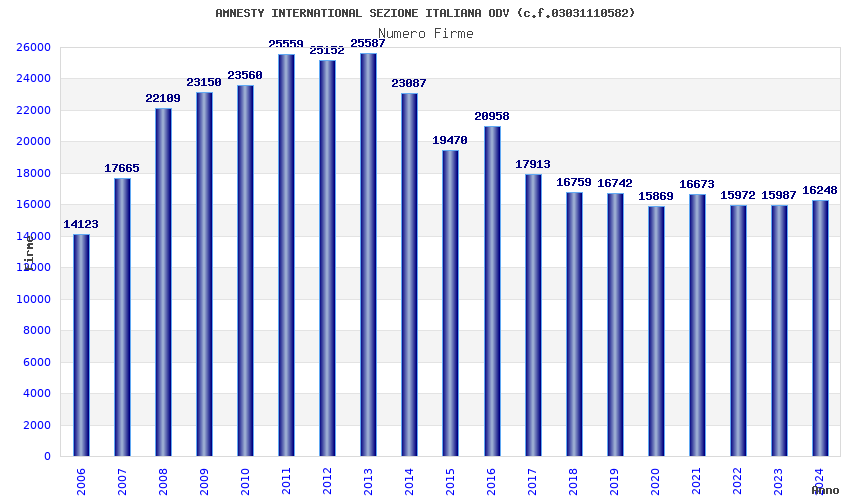 | Anno | Firme | Importi | Media | Naz. | Reg. | Prov. | Comu. |