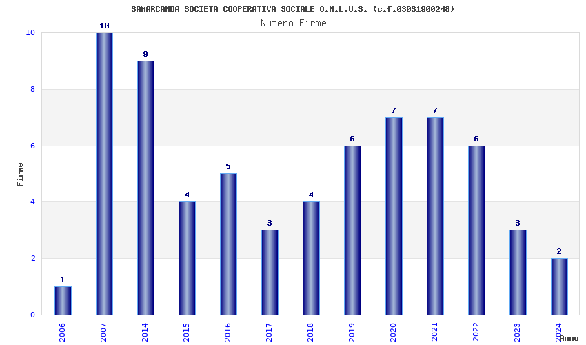 | Anno | Firme | Importi | Media | Naz. | Reg. | Prov. | Comu. |