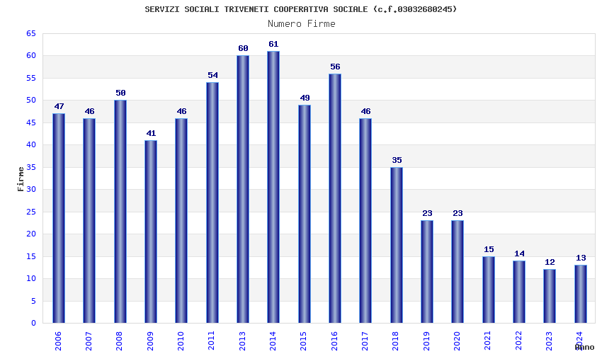 | Anno | Firme | Importi | Media | Naz. | Reg. | Prov. | Comu. |