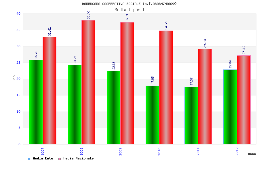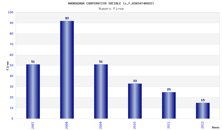 | Anno | Firme | Importi | Media | Naz. | Reg. | Prov. | Comu. |