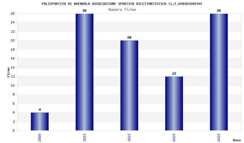 | Anno | Firme | Importi | Media | Naz. | Reg. | Prov. | Comu. |