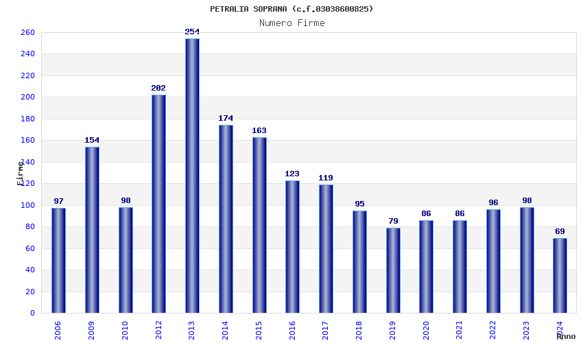 | 2013 | 254 | 2.785,74 | 10,97 | 14.491 | 835 | 214 | 2 |