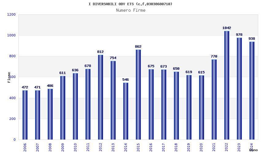 | Anno | Firme | Importi | Media | Naz. | Reg. | Prov. | Comu. |