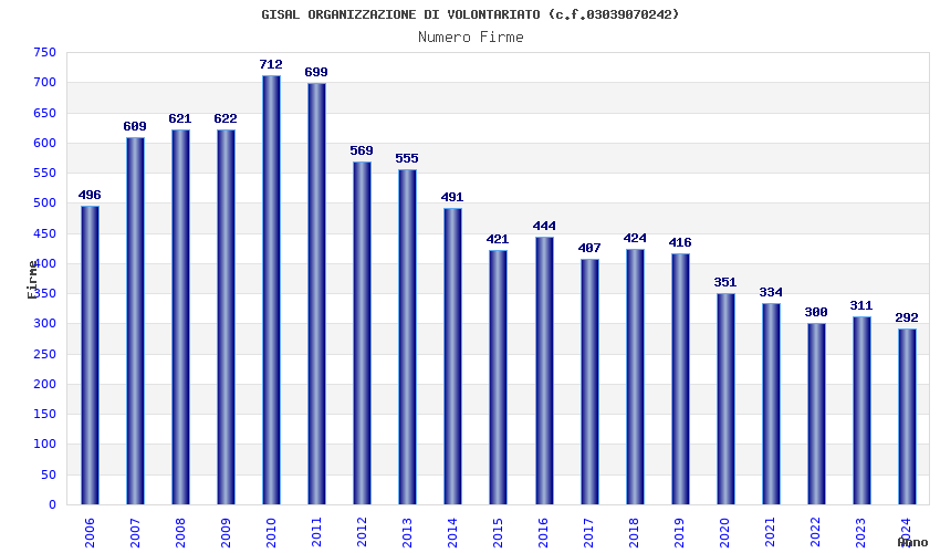 | Anno | Firme | Importi | Media | Naz. | Reg. | Prov. | Comu. |