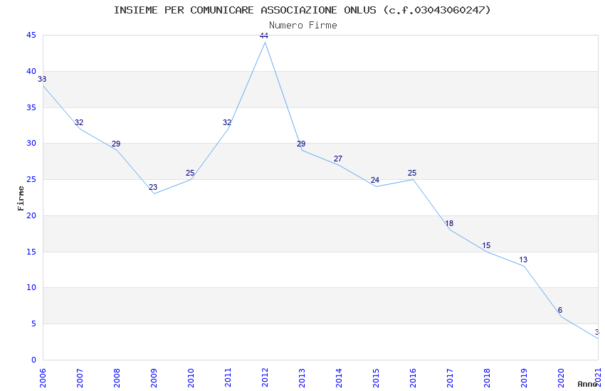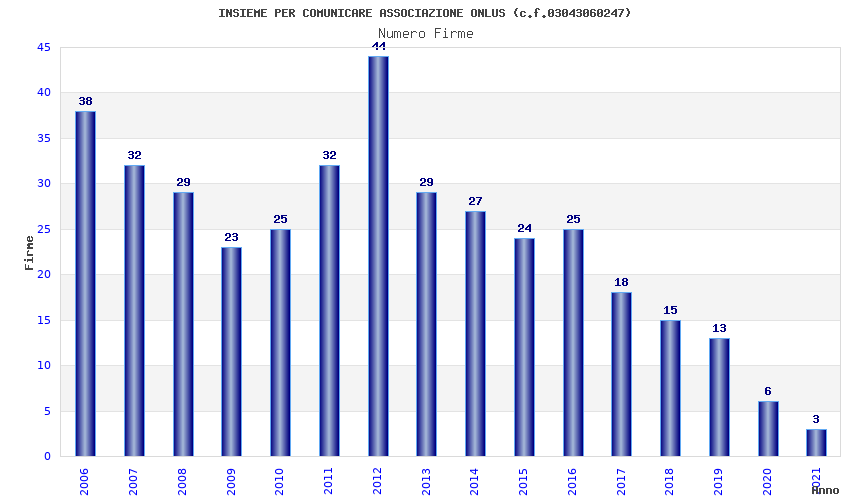 | Anno | Firme | Importi | Media | Naz. | Reg. | Prov. | Comu. |