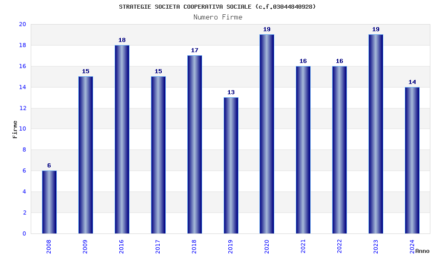 | Anno | Firme | Importi | Media | Naz. | Reg. | Prov. | Comu. |