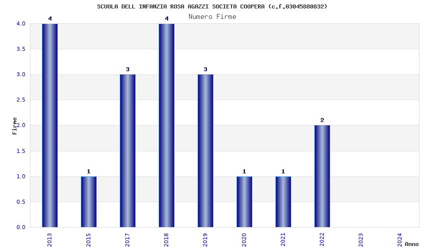 | Anno | Firme | Importi | Media | Naz. | Reg. | Prov. | Comu. |