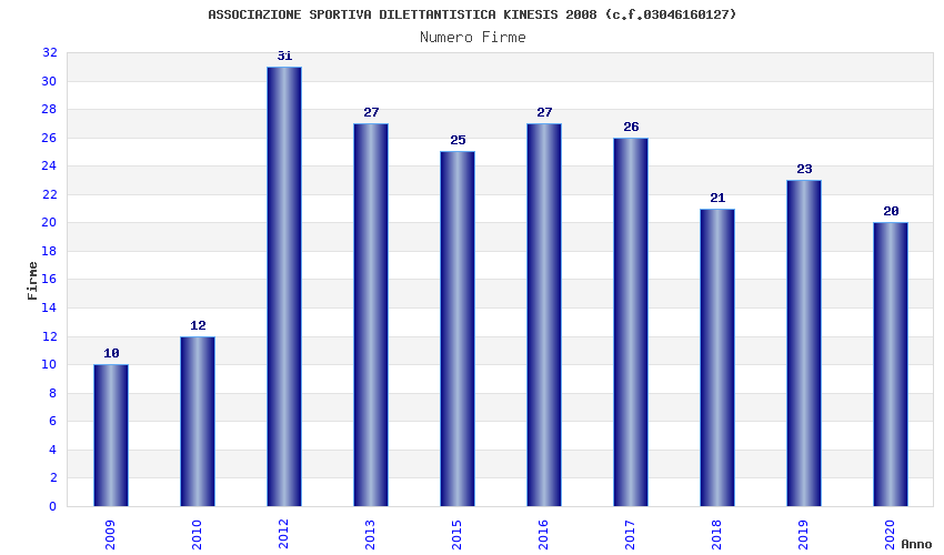 | Anno | Firme | Importi | Media | Naz. | Reg. | Prov. | Comu. |