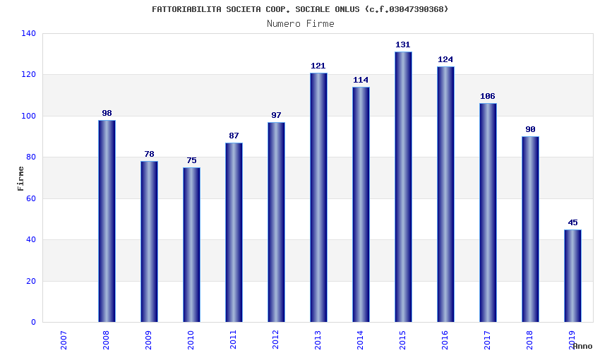 | Anno | Firme | Importi | Media | Naz. | Reg. | Prov. | Comu. |