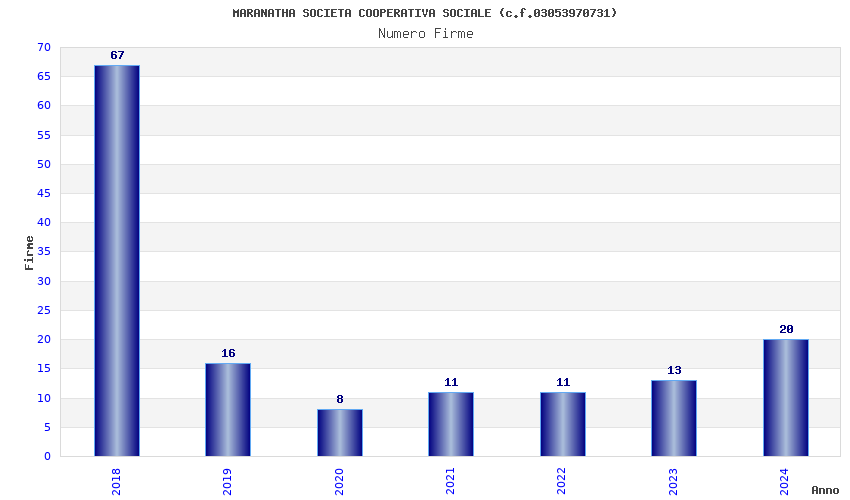 | Anno | Firme | Importi | Media | Naz. | Reg. | Prov. | Comu. |