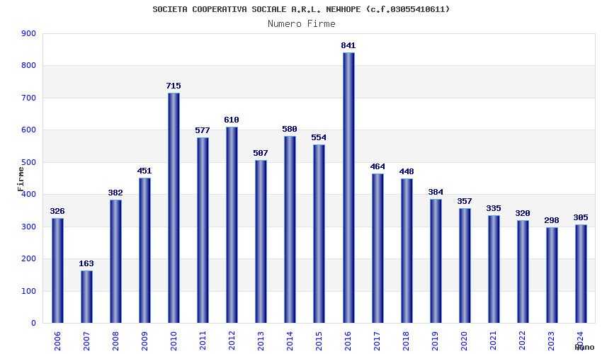| Anno | Firme | Importi | Media | Naz. | Reg. | Prov. | Comu. |