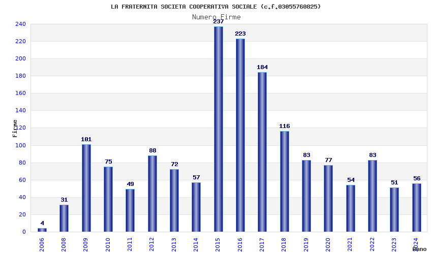 Anno Firme Importi Media Naz. Reg. Prov. Comu.