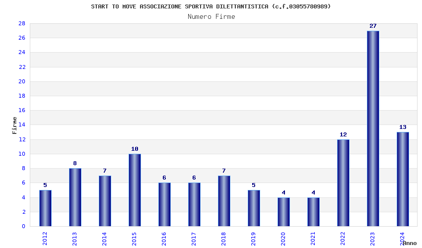 | Anno | Firme | Importi | Media | Naz. | Reg. | Prov. | Comu. |