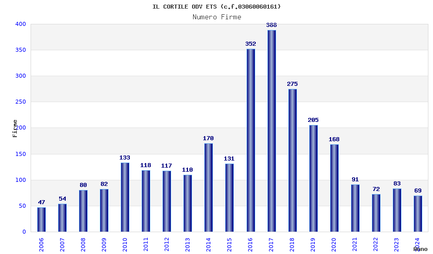 | Anno | Firme | Importi | Media | Naz. | Reg. | Prov. | Comu. |