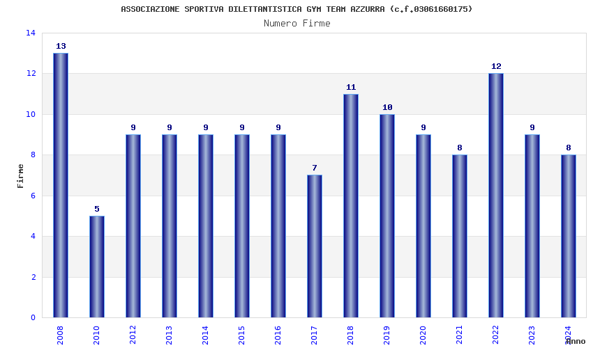 | Anno | Firme | Importi | Media | Naz. | Reg. | Prov. | Comu. |