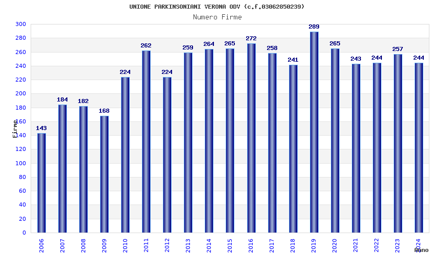 | Anno | Firme | Importi | Media | Naz. | Reg. | Prov. | Comu. |