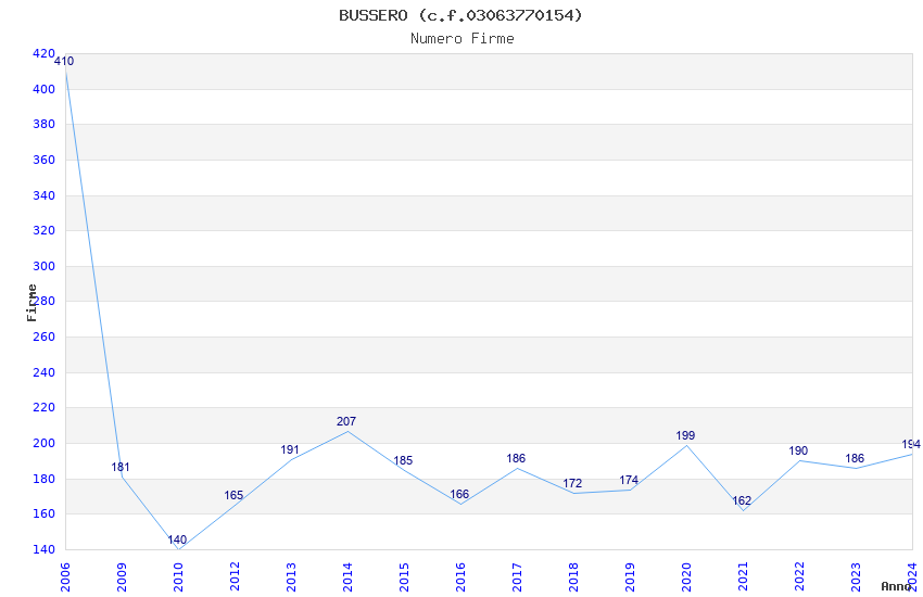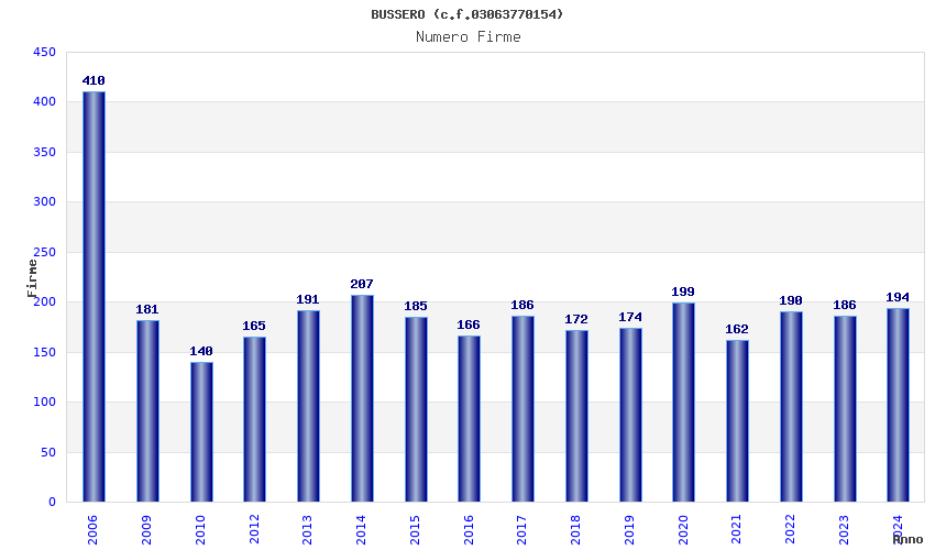 | Anno | Firme | Importi | Media | Naz. | Reg. | Prov. | Comu. |
