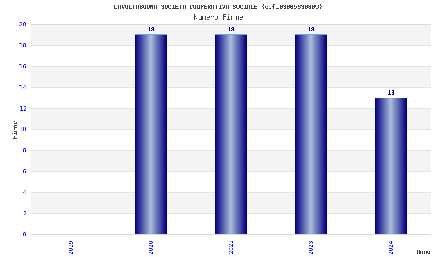 | Anno | Firme | Importi | Media | Naz. | Reg. | Prov. | Comu. |