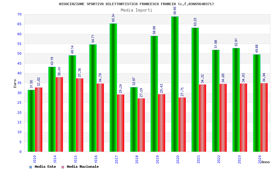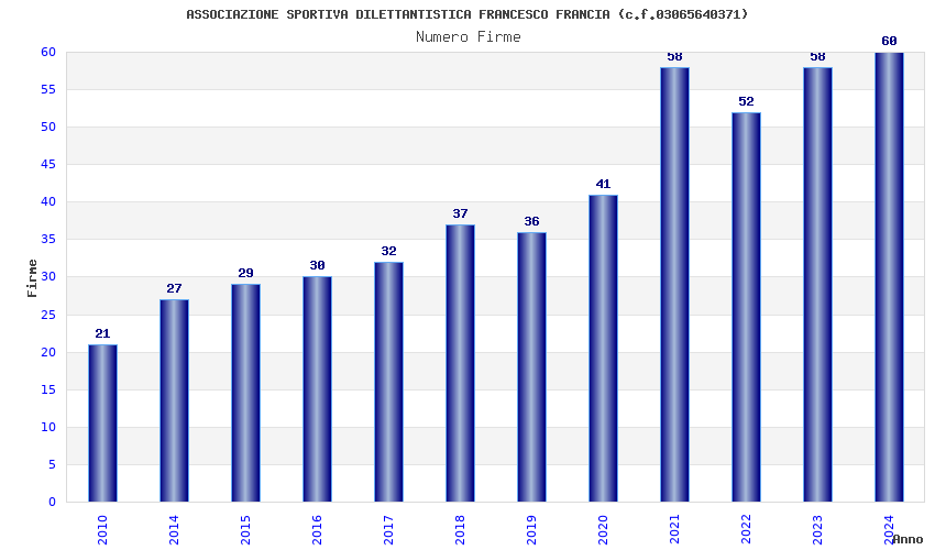 | Anno | Firme | Importi | Media | Naz. | Reg. | Prov. | Comu. |
