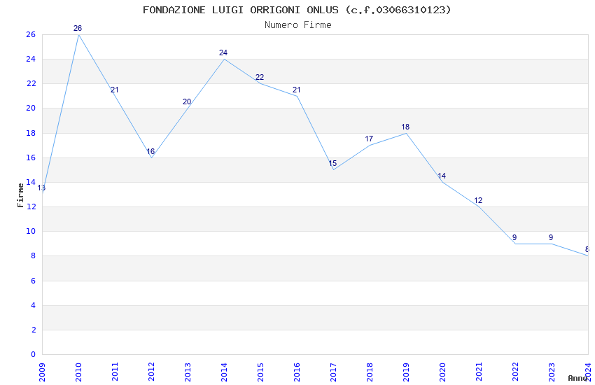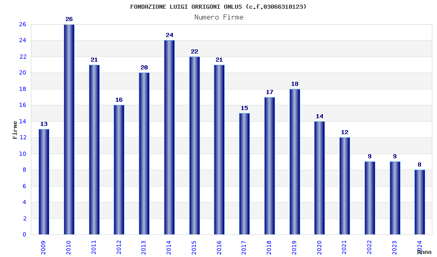| Anno | Firme | Importi | Media | Naz. | Reg. | Prov. | Comu. |