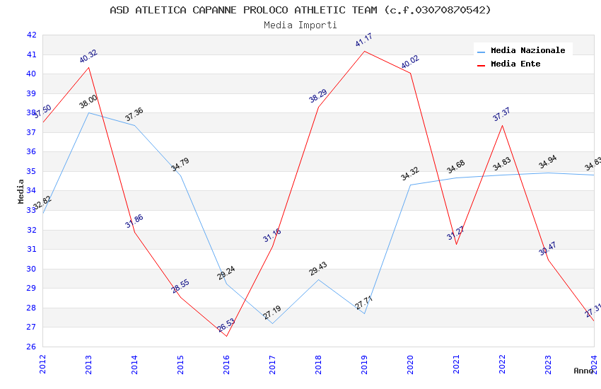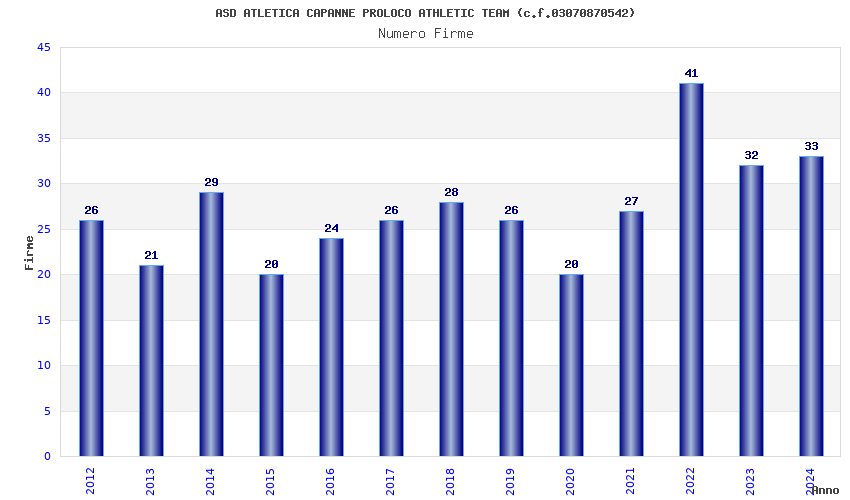 | Anno | Firme | Importi | Media | Naz. | Reg. | Prov. | Comu. |