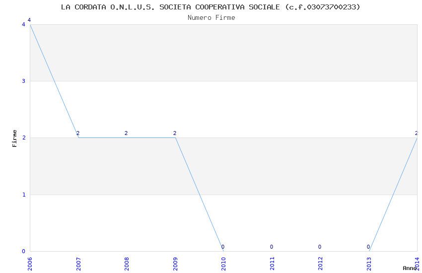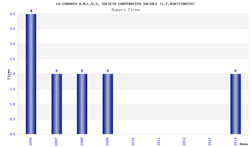 | Anno | Firme | Importi | Media | Naz. | Reg. | Prov. | Comu. |