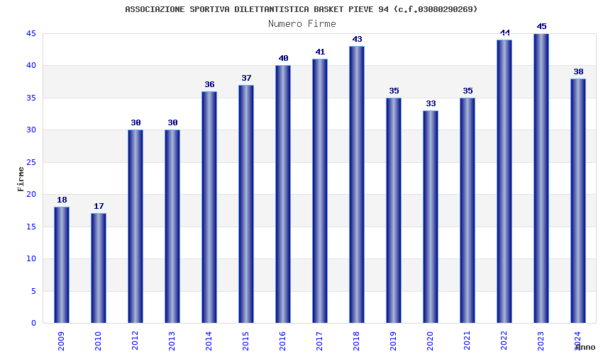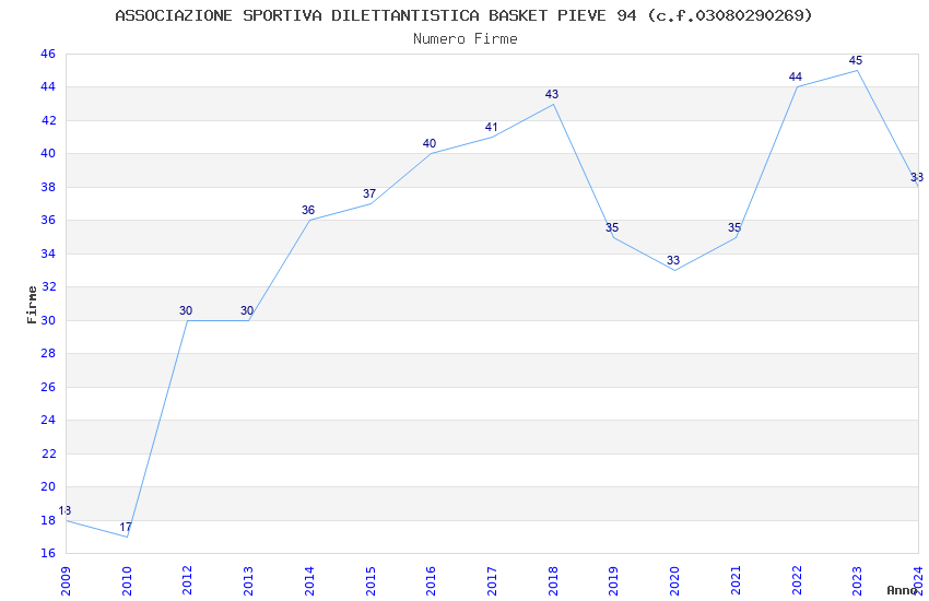 | 2017 | 41 | 1.923,75 | 46,92 | 24.101 | 2.266 | 368 | 3 |