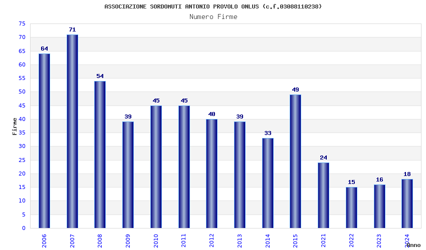 | Anno | Firme | Importi | Media | Naz. | Reg. | Prov. | Comu. |