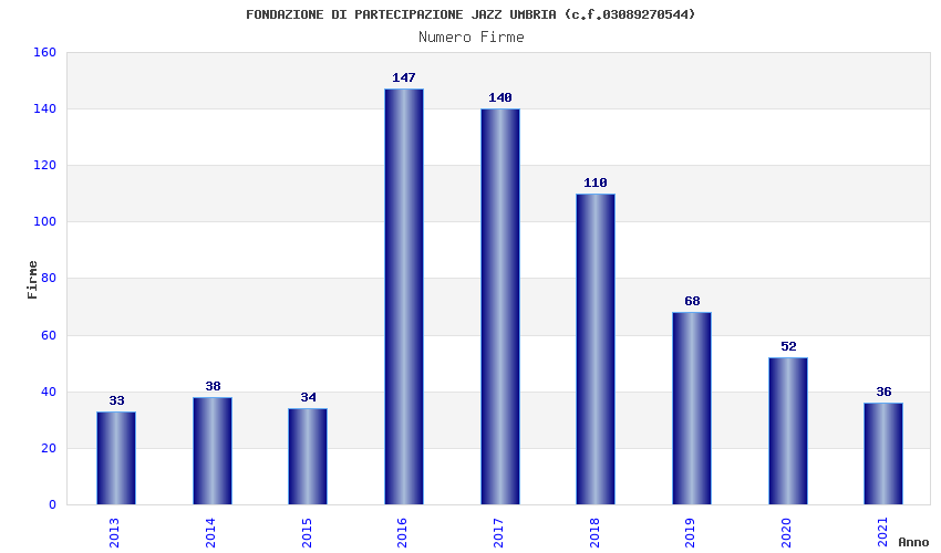 | Anno | Firme | Importi | Media | Naz. | Reg. | Prov. | Comu. |