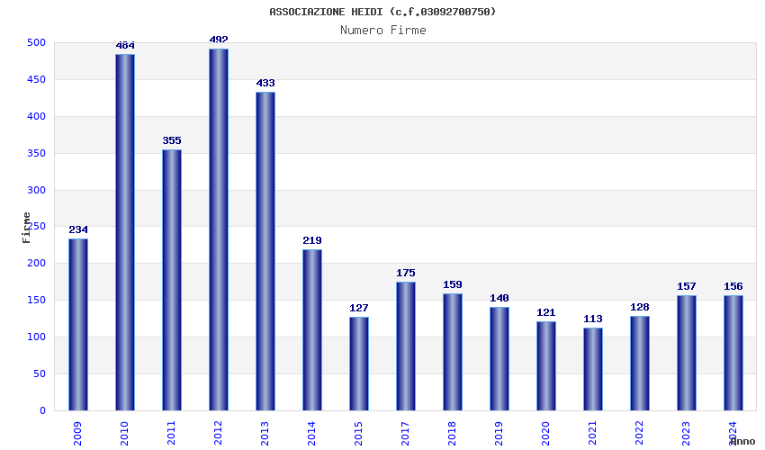| Anno | Firme | Importi | Media | Naz. | Reg. | Prov. | Comu. |