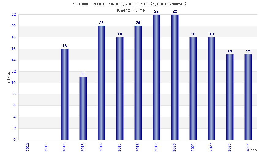 | Anno | Firme | Importi | Media | Naz. | Reg. | Prov. | Comu. |