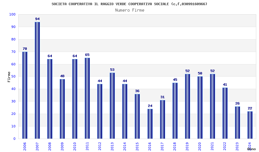 | Anno | Firme | Importi | Media | Naz. | Reg. | Prov. | Comu. |
