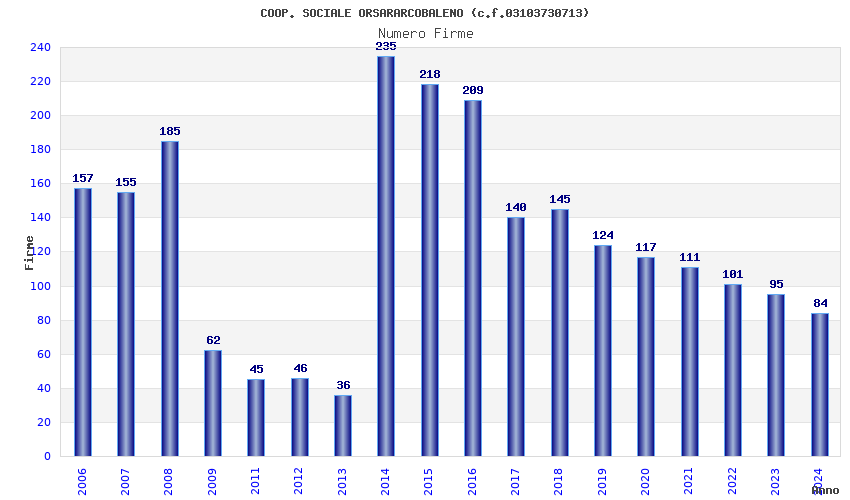 | 2014 | 235 | 2.619,02 | 11,14 | 18.283 | 866 | 164 | 1 |