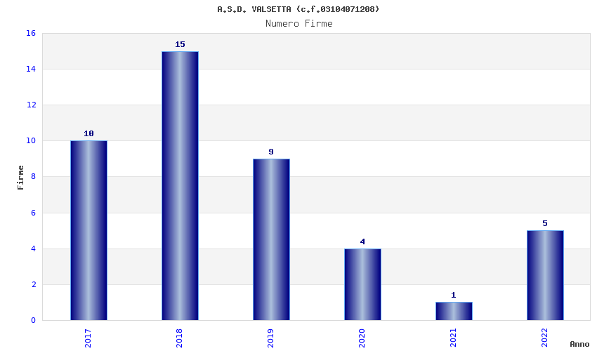 | Anno | Firme | Importi | Media | Naz. | Reg. | Prov. | Comu. |