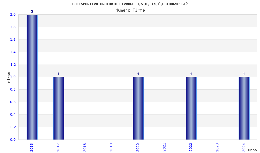 | Anno | Firme | Importi | Media | Naz. | Reg. | Prov. | Comu. |