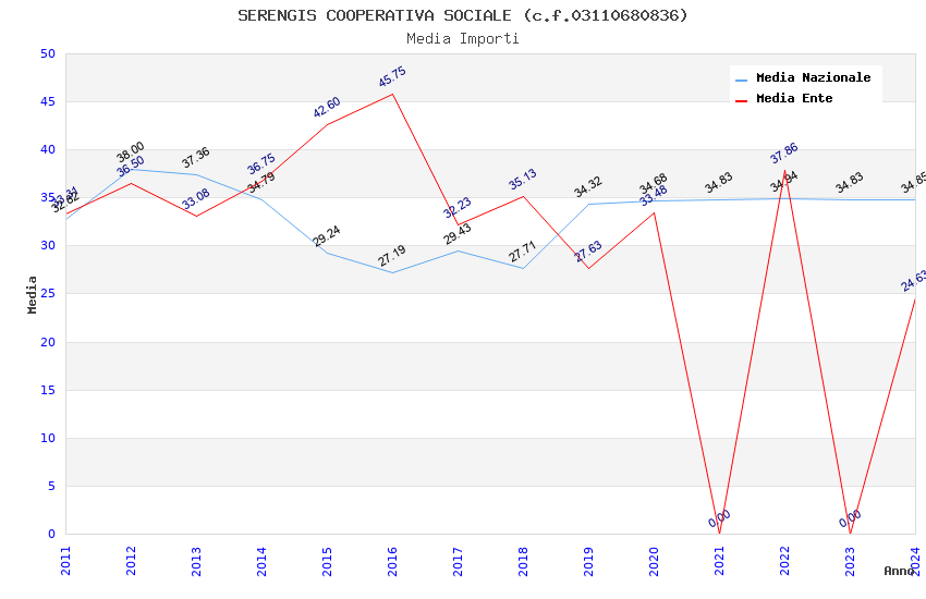 | Anno | Firme | Importi | Media | Naz. | Reg. | Prov. | Comu. |