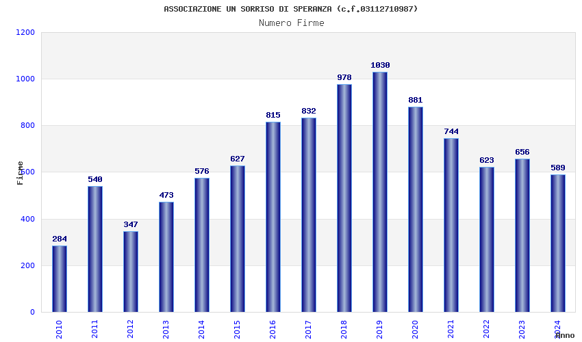 | Anno | Firme | Importi | Media | Naz. | Reg. | Prov. | Comu. |