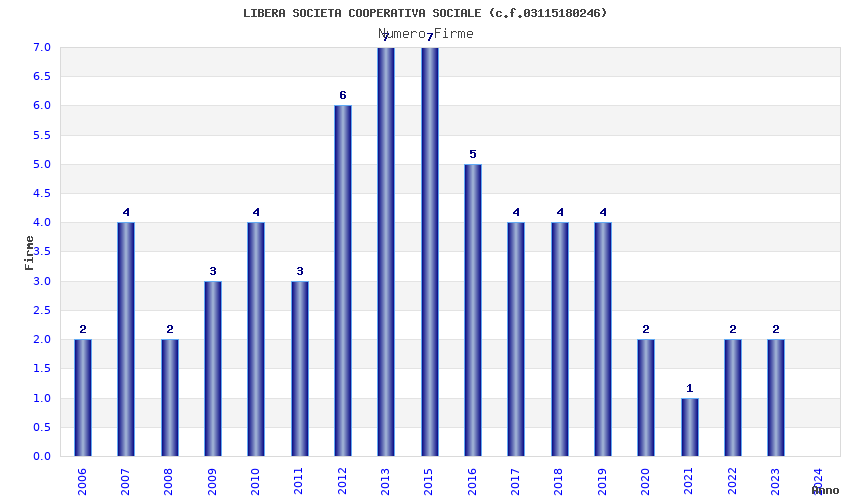 | Anno | Firme | Importi | Media | Naz. | Reg. | Prov. | Comu. |