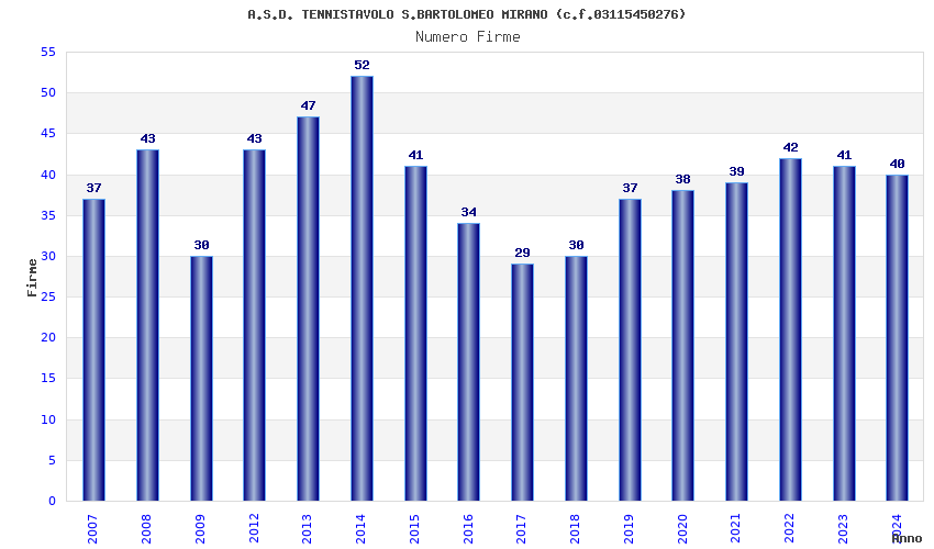 | 2014 | 52 | 2.033,05 | 39,10 | 21.583 | 2.060 | 299 | 5 |