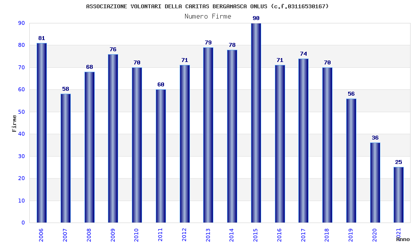 | Anno | Firme | Importi | Media | Naz. | Reg. | Prov. | Comu. |