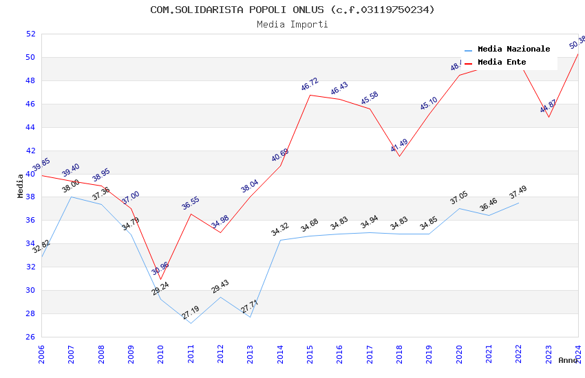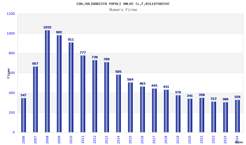 | Anno | Firme | Importi | Media | Naz. | Reg. | Prov. | Comu. |