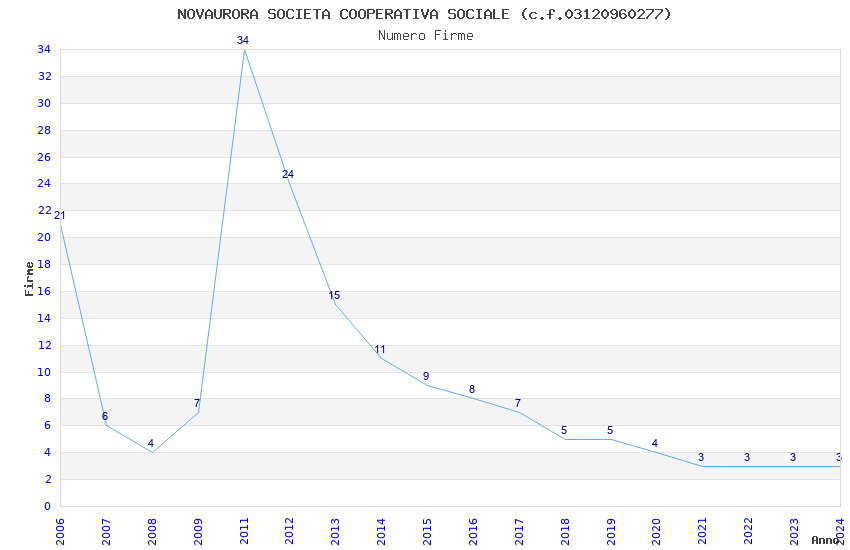 | Anno | Firme | Importi | Media | Naz. | Reg. | Prov. | Comu. |