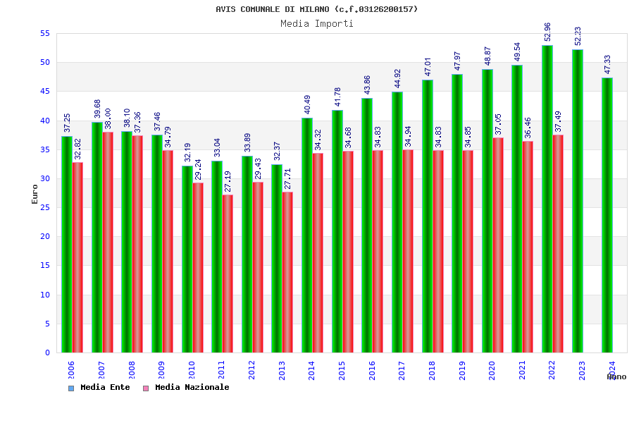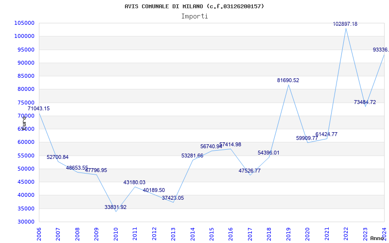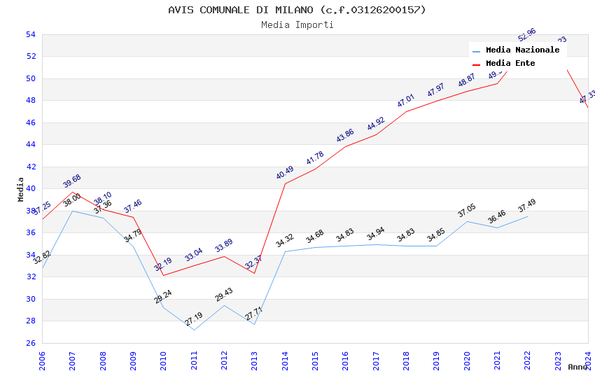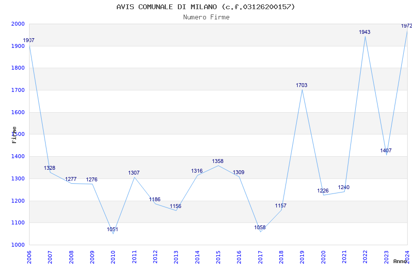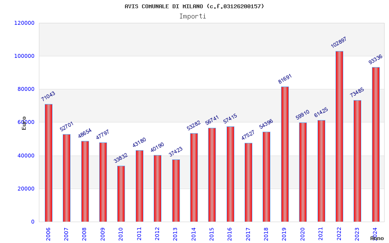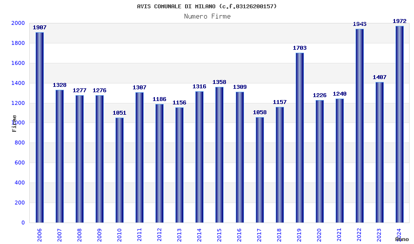 | Anno | Firme | Importi | Media | Naz. | Reg. | Prov. | Comu. |